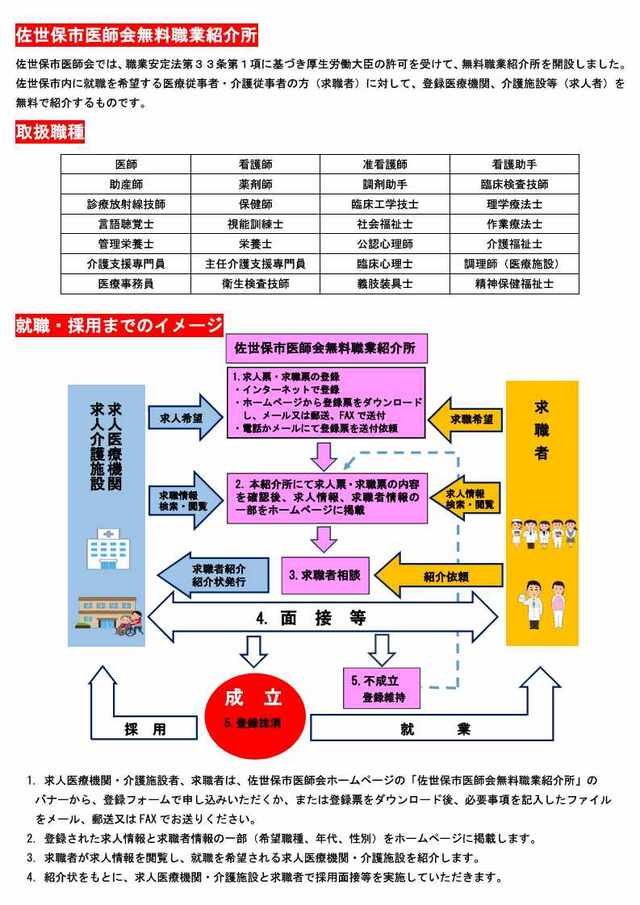 佐世保市医師会では、医療・介護従事者の求職・求人あっせん業務を行っています。