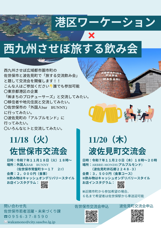 ※近隣市町から参加希望の場合、6名まで希望者は佐世保駅から車送迎可能